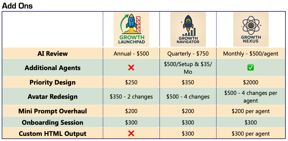 Yes. AI Training is US$1,000. This includes working with your team to acquire the graphic assets, content assets for training and creating the processes for your custom AI copilot.