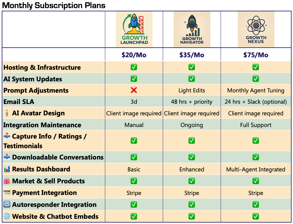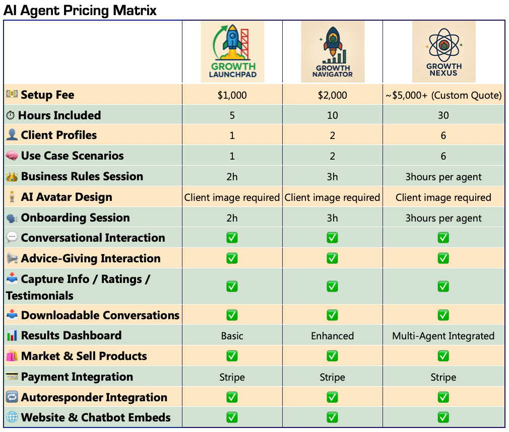 Below is a sample of our previously created Coach Agents. We currently have over 30 different Coach Agents ready to be tailored to your business.